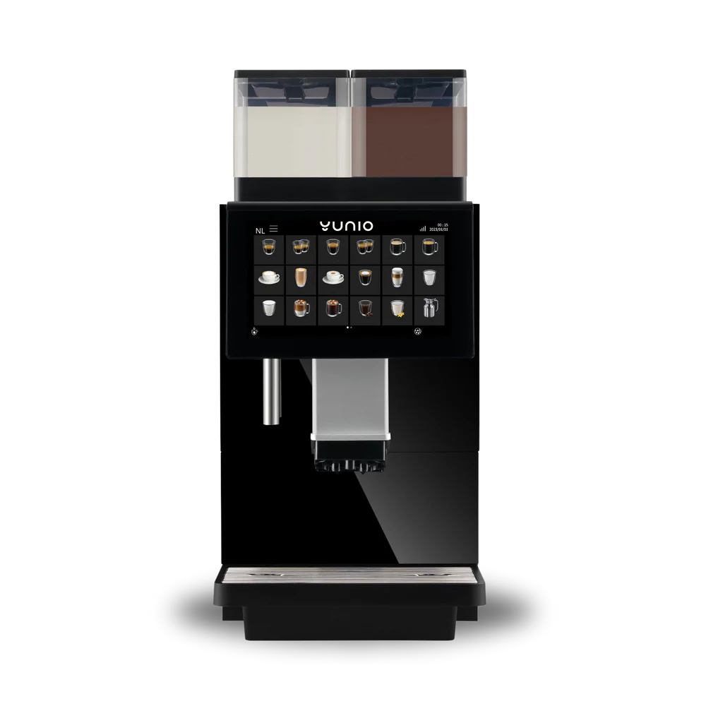 Yunio staat voor volautomatische koffiemachines die kwaliteit en technische betrouwbaarheid combineren. Ontwikkeld voor kantoren en kleinere horecazaken waar gemak, snelheid en een constante smaak belangrijk zijn. Dankzij het compacte formaat en het strakke ontwerp passen Yunio machines moeiteloos in koffiepantry’s, vergaderruimtes, showrooms en restaurants.